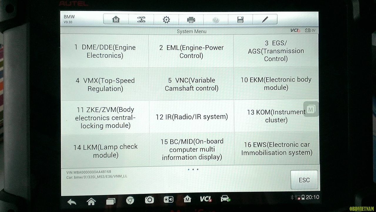Hệ thống điện tử trên xe BMW,các hình ảnh này chúng tôi lấy được khi sử dụng máy đa năng Autel Maxisys MS908P trên dòng xe BMW