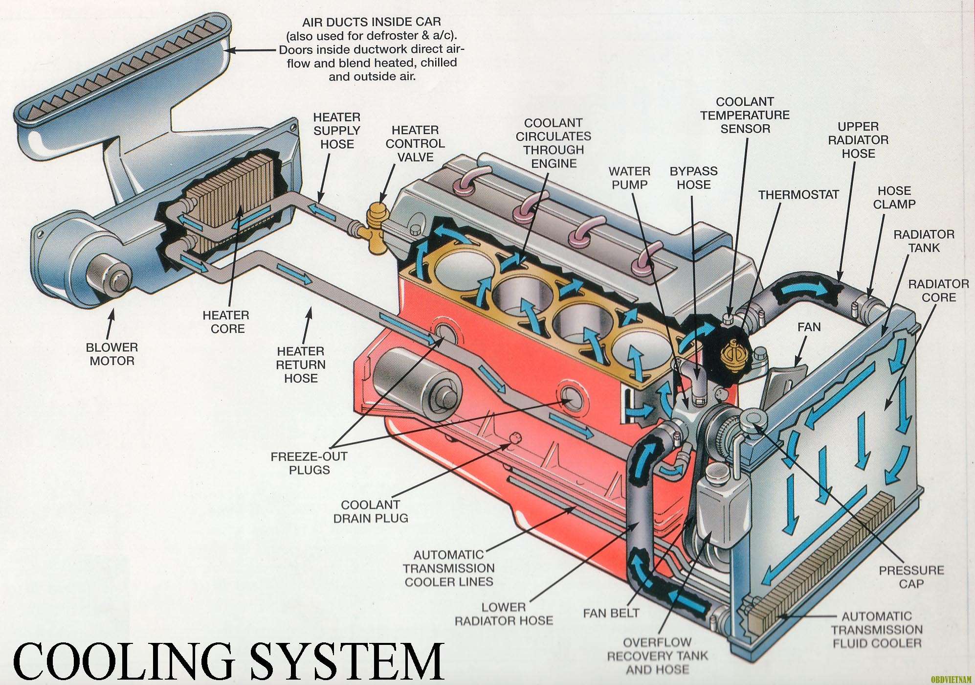 Coolant Circulates Through Engine : Mạch nước nóng nằm trong động cơ.