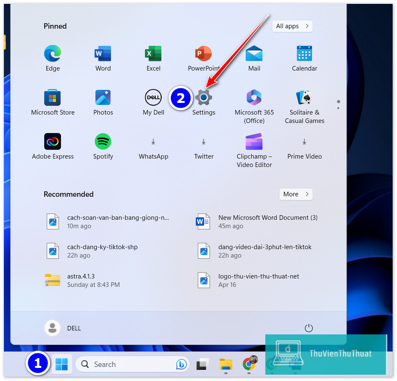 Bước 1: Nhấn chọn biểu tượng Start -> Settings