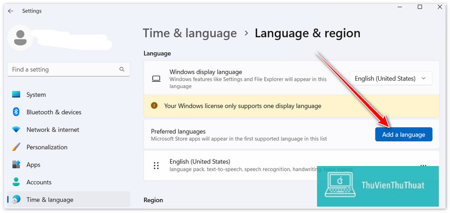 Lưu ý: Tính năng này chỉ có tác dụng trên phiên bản Win 11 / Win 10 hỗ trợ nhiều ngôn ngữ, nếu win 11 trên máy tính bạn chỉ hỗ trợ 1 ngôn ngữ duy nhất sẽ không thực hiện được hành động này.