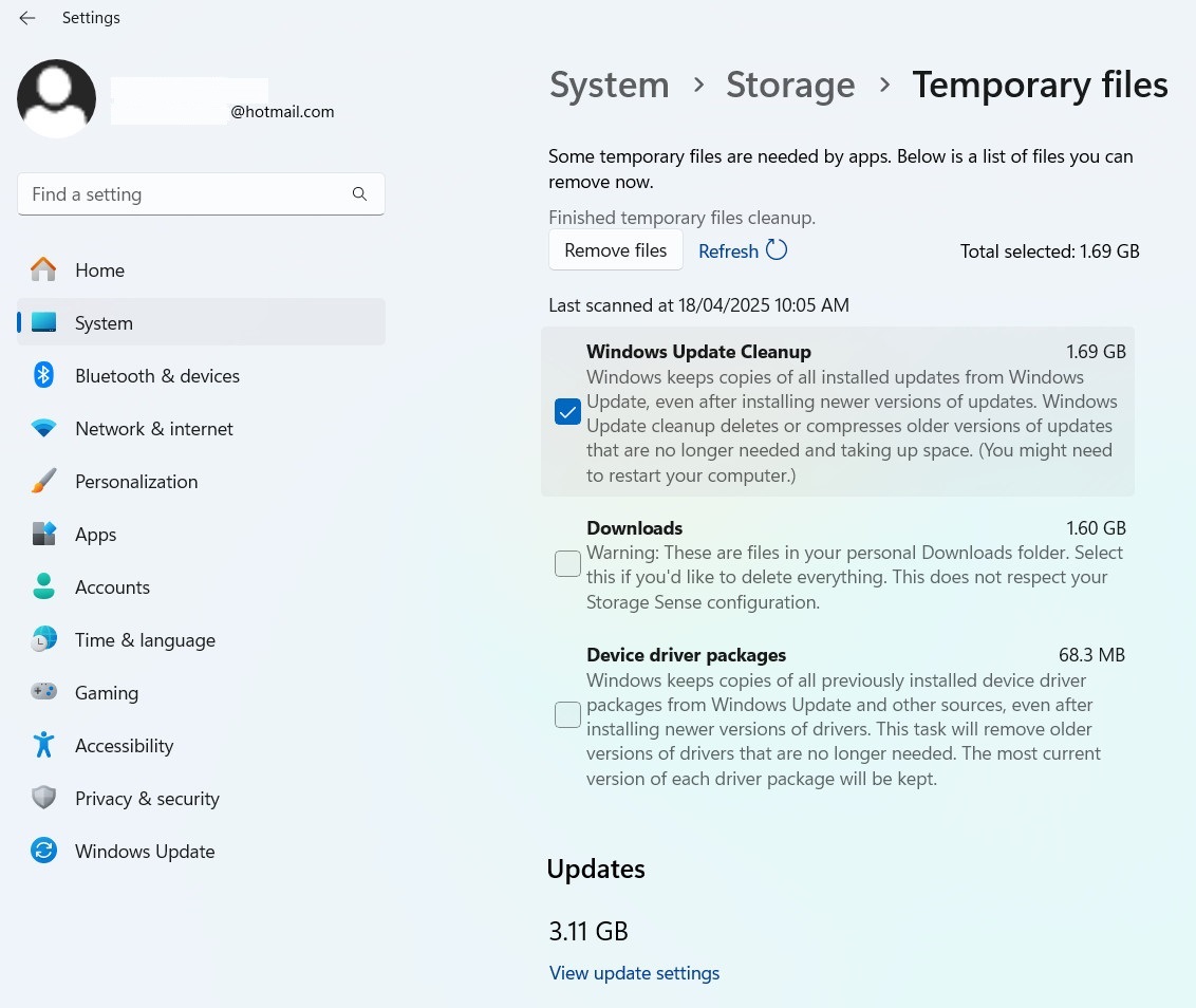 Người dùng có thể dọn dẹp các file cập nhật Windows 11 khỏi bộ nhớ trong của hệ thống thông qua ứng dụng Settings chỉ bằng vài bước.