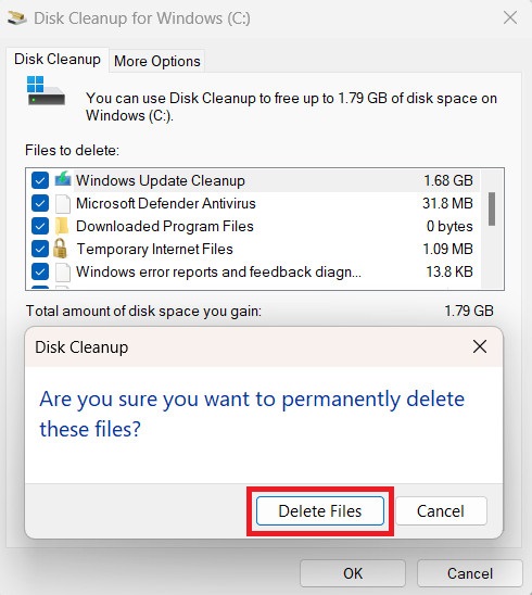 2. Cách xóa file cập nhật Win 11 thông qua công cụ Disk Cleanup