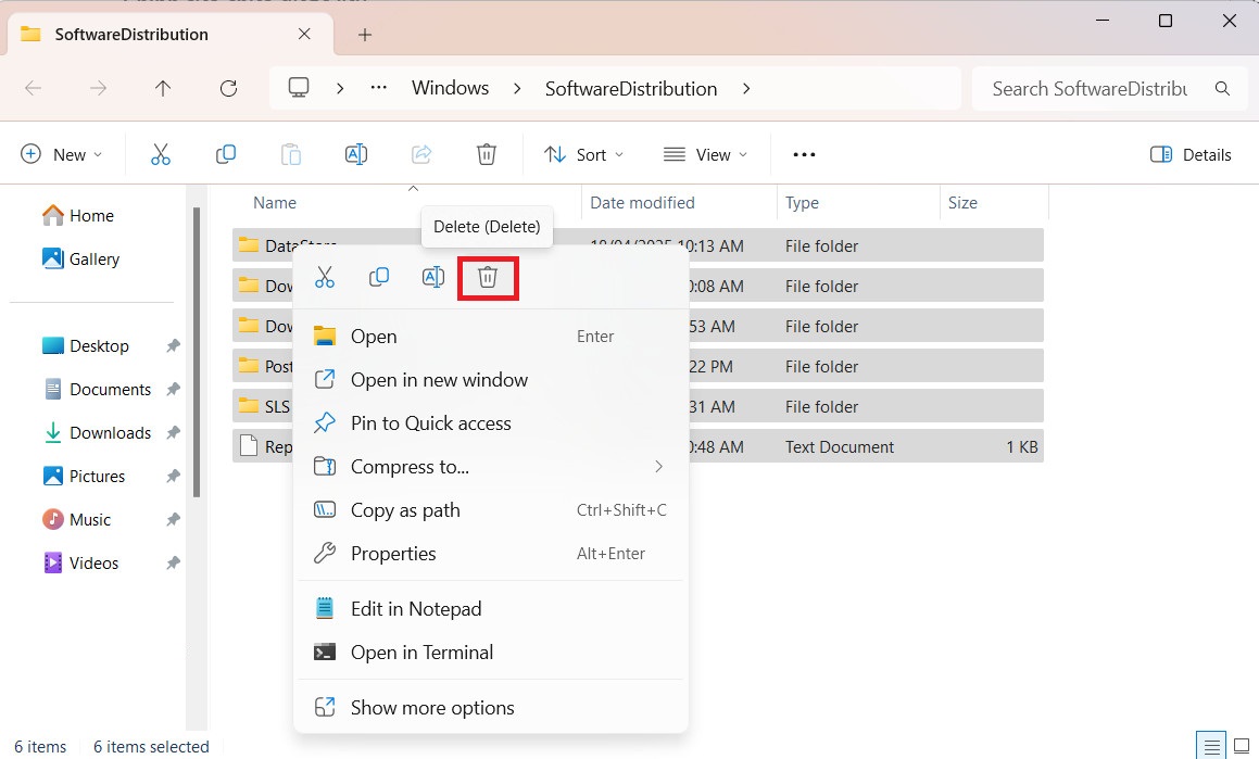 Thao tác này sẽ xóa các tệp cập nhật và giúp bạn lấy lại dung lượng hoặc khắc phục sự cố liên quan đến cập nhật trên Windows 11. Lưu ý rằng lần tiếp theo Windows Update chạy, nó sẽ tạo lại thư mục SoftwareDistribution và tải xuống lại bất kỳ tệp cập nhật cần thiết nào.