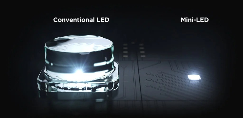 Công nghệ Mini LED vẫn sử dụng đèn nền LED, nhưng kích thước bóng đèn Led nhỏ hơn rất nhiều so với bóng đèn Led phổ thông. Nhờ vậy cho ra độ sáng, đặc biệt là độ tương phản cao hơn công nghệ đèn nền LED thông thường. Tuy nhiên, nếu so sánh với công nghệ màn hình OLED thì OLED vẫn là công nghệ màn hình khác biệt và cao cấp nhất tính tới thời điểm hiện tại. Công nghệ OLED không dùng đèn nền mà mỗi điểm ảnh là 1 bóng đèn tắt/mở độc lập nên độ tương phản, màu đen cho ra dường như là tuyệt đối, đó là điều Mini LED chưa làm được.
