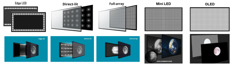 Sự khác biệt giữa MiniLED, LED, OLED và QLED