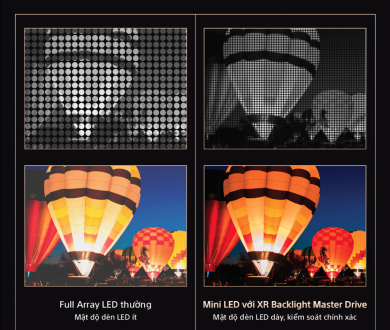 Càng nhiều đèn LED hơn thì sẽ có thể xử lý bật /tắt nhiều vùng tối hơn, độ chuyển màu cũng như độ nét vùng thiếu sáng cải thiện rõ rệt. Một màn hình truyền thống có thể sử dụng hàng trăm đèn LED, nhưng màn hình Mini-LED có thể hàng nghìn điốt. Điều này đặc biệt quan trọng đối với tiêu chuẩn HDR khi các khu vực riêng lẻ trong hình ảnh phải thể hiện rõ độ sáng tối chênh lệch ra sao.