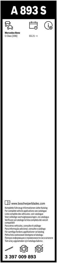 Gạt mưa Mercedes Benz C Classe W206 (2021+) Bosch AEROTWIN EURO (A893S) chính hãng 22inch và 22inch (3397009893) - Bộ 2 cái