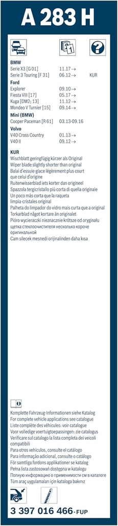 Gạt mưa sau Ford Everest (2022+) chính hãng Bosch (A283H) 11inch