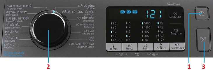- Nhấn liên tục "DelayEnd" đến mức thời gian mong muốn (tối thiểu 1 giờ, tối đa 24 giờ). Mỗi lần nhấn thay đổi 1 giờ.