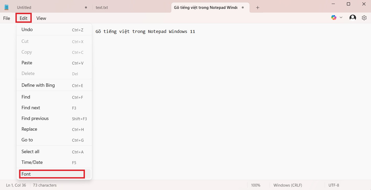 Khắc phục lỗi gõ tiếng Việt trong ứng dụng Notepad của Windows 11