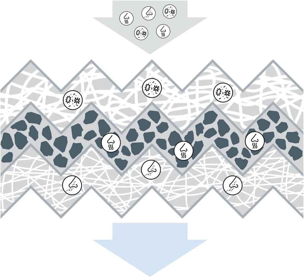 - Lớp lọc thường, than hoạt tính, than hoạt tính và bụi mịn (tùy mã/loại sản phẩm)