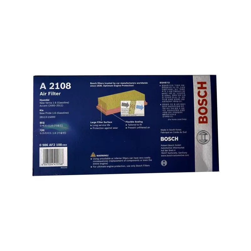 Lọc gió động cơ Hyundai Accent 1.4 (2005-2011); KIA Rio 1.4i (2005-2011) chính hãng Bosch (0986AF2108)
