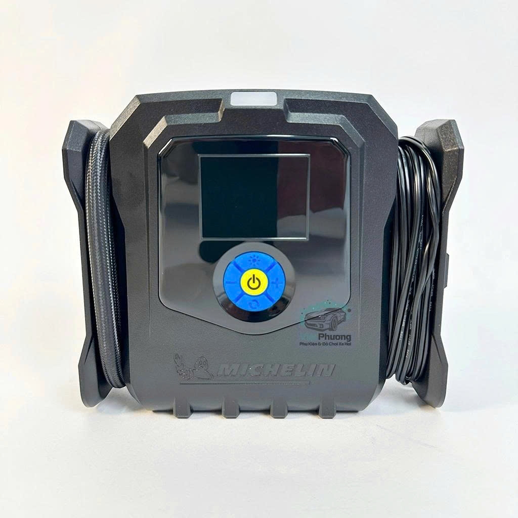 Bơm Michelin dòng phổ biến màu đen. Bơm dự phòng cho tất cả các dòng xe cá nhân, dùng nguồn điện 12v của ô tô. Tiện ích đo áp suất lốp bằng điện tử, lập trình tự ngắt khi bơm đủ áp suất cho lốp xe.