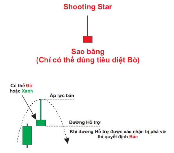 Nến Shooting Star có hình dạng giống nến Inverted Hammer nhưng hoàn toàn khác nhau về tính chất. Nến Shooting Star xuất hiện trong thị trường có xu hướng tăng và thông báo khả năng tạo đỉnh của xu hướng đó