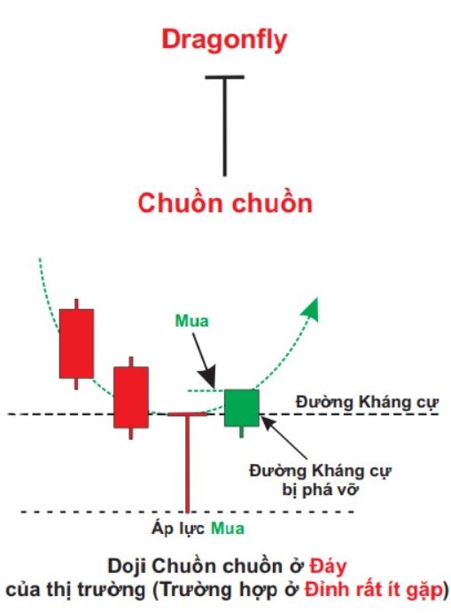 - Nến Dragonfly Doji - Doji chuồn chuồn