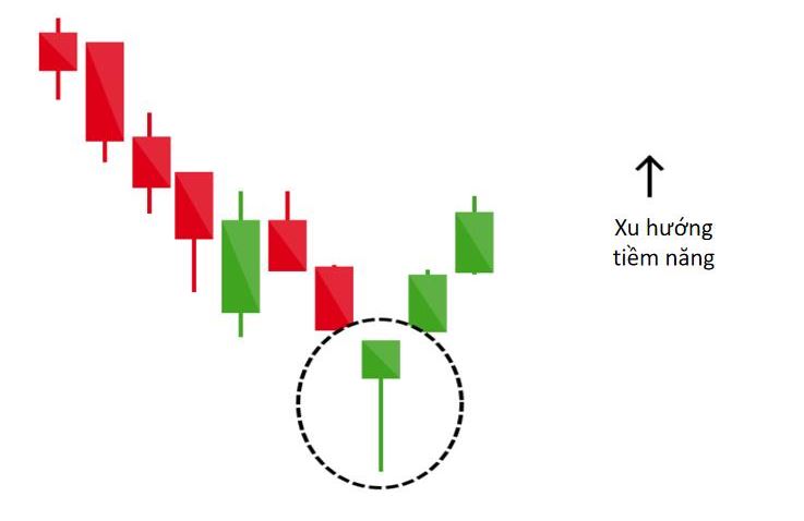 Ý nghĩa: dự báo dấu hiệu đảo chiều trong xu hướng giảm trước đó. Tuy nhiên, nhà đầu tư cần phải quan sát thêm để xác nhận thêm dấu hiệu trước khi vào giao dịch